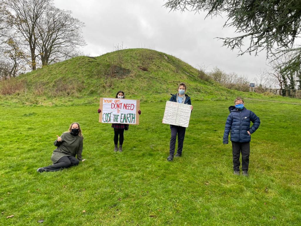 On Friday Dec 18, 2020, members of the Cambridge Schools Eco Council will be meet at iconic sites around Cambridge in socially distanced groups of six to sit-in with placards and signs. There were be no chants or speeches, only kids sitting down with placards to remind the world of the important climate crisis. We discouraged supporters from joining us as we wish everyone to be safe in these uncertain times. Instead, we would recommended striking from the safety of their own homes by sharing pictures with a Christmas message about climate change.